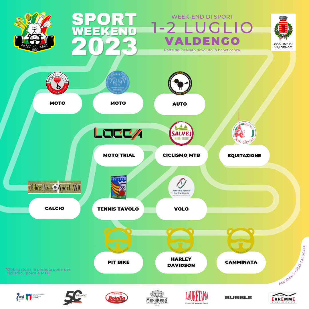 Lo studio ErrEmmE partner dell’evento Sport Weekend 2023 vi invita a Valdengo il 1 -2 luglio per un bellissimo fine settimana di sport, nel link sottostante troverete tutte le indicazioni con gli eventi in programma